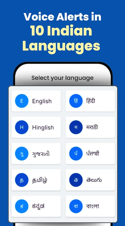 Choose Hindi, Tamil, Telugu, Marathi, Kannada, Bengali, Gujarati, Punjabi, Hinglish, or English with male/female voice options for crystal-clear announcements.