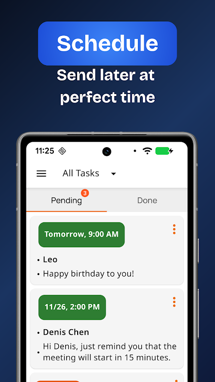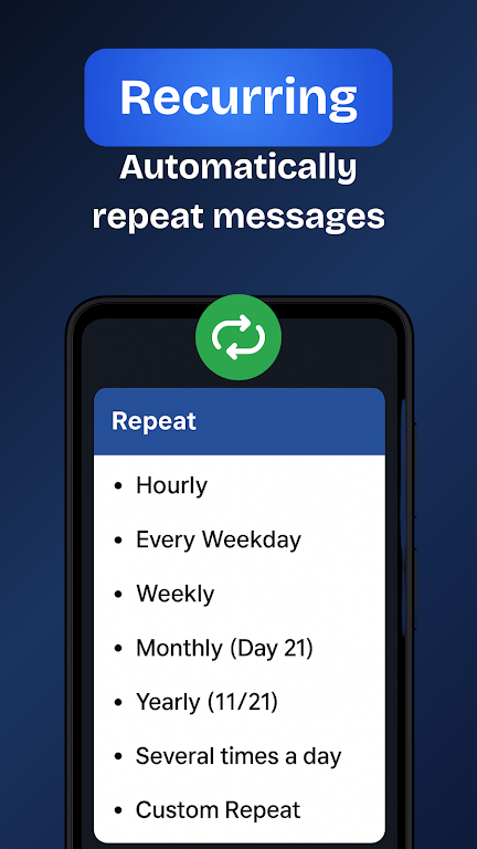 Note: This app requires SMS and Call Log permissions to function properly. Accessibility API is used to send scheduled messages on your behalf, without collecting or sharing any user data. Auto Text is not affiliated with WhatsApp, Messenger, or Telegram. WhatsApp and Messenger are registered trademarks of Meta Platforms, Inc. Telegram is a registered trademark of Telegram FZ-LLC.