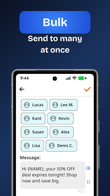 With Auto Text, you’ll never forget to send important messages again. Easily schedule birthday wishes, reminders, business updates, and promotional campaigns to hundreds of contacts. Stay productive by automating your communications, even when you’re busy driving, sleeping, or in meetings.