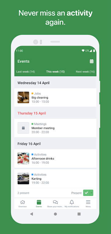 Stay up-to-date with events, tournaments, or meetings and never miss important information again. Get notified about changes like training cancellations, view photos, and engage with your community’s calendar. Socie consolidates everything you need, offering seamless communication and organization, all from your mobile device.