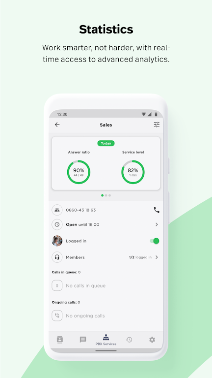 Experience the future of business communication with Telavox's open-world mobility features. Monitor your colleagues' availability in real time, transfer calls to any extension or external number, and manage your data usage—all in one app. With Telavox, you’ll always stay connected and in control, no matter where you are.
