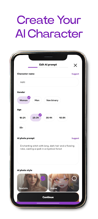 • Smart Conversations: Dynamic, real-time chats with AI companions who learn, evolve, and match your personality.