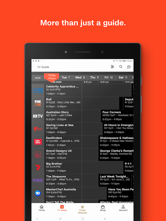 Whether you’re planning your next TV marathon or need to make changes to your account, MyFoxtel makes it easy. Quickly navigate through your TV Guide, set reminders for upcoming shows, manage your Foxtel subscription, and even shop for the latest products—all with just a few taps.