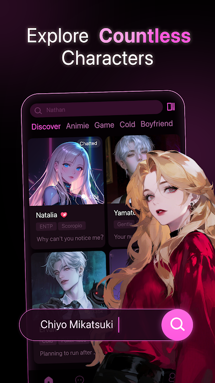 Experience AI conversations that feel alive. Our app blends advanced voice AI with character-level thinking to create chats that sound and react like real people. Explore a massive cast featuring celebrities, historical icons, movie and TV characters, open-world anime gacha heroes, and fully original creations.