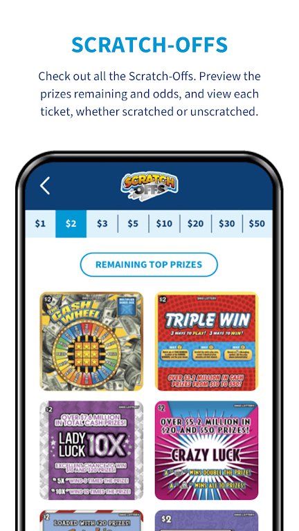 The Official Ohio Lottery App makes it easy to stay on top of your lottery game. Whether you're checking the latest jackpots, scanning your tickets to see if you’ve won, or cashing out your winnings directly to your bank account, everything you need is right in the palm of your hand. Stay up-to-date on the newest Scratch-Offs releases and earn rewards with MyLotto Rewards® while enjoying all the excitement Ohio's lottery has to offer.