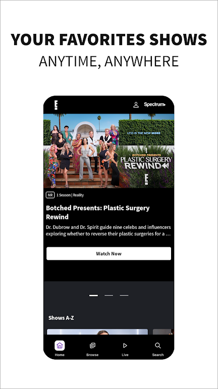 Stay fully connected to the world of entertainment with the E! app—your home for full episodes, live TV, movies, and past-season pop-culture hits. Enjoy an easy way to watch reality TV online, follow trending celebrity moments, and binge your favorite series across multiple networks.