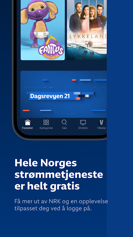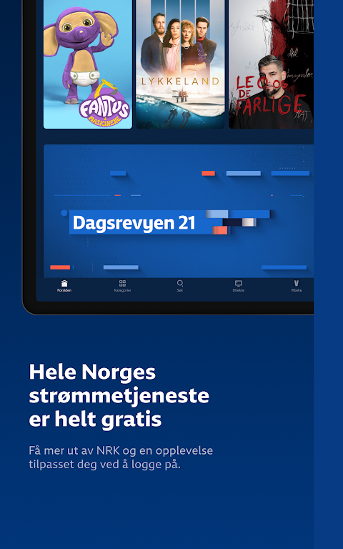 With individual profiles for adults and children, NRK offers age-appropriate content and a viewing journey that grows with your child. Pick up where you left off, favorite the shows you love, choose your preferred news district, and access TV even while traveling abroad. Logging in is completely optional and always free.