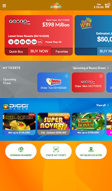Take your game day anywhere with the official Georgia Lottery mobile app. Scan tickets instantly, check winning numbers, purchase select Georgia Lottery games, and locate trusted retailers—all from your phone or tablet. Designed for smooth navigation and quick results, it’s the easiest way to stay on top of drawings, jackpots, and Diggi Games while on the go.