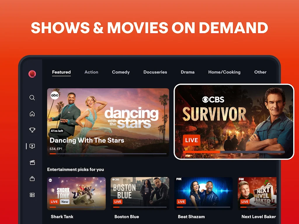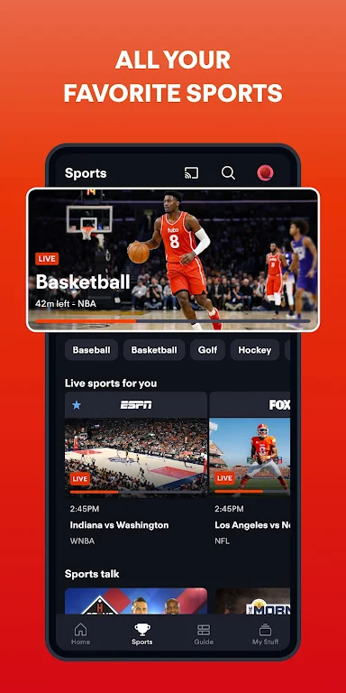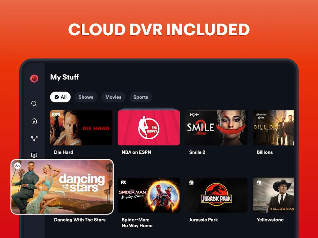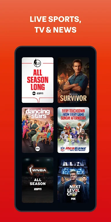 Watch NFL, MLB, NBA, NHL, NASCAR, NCAA college football, NCAA college basketball, WNBA, MLS soccer, F1 racing, FIFA World Cup qualifiers, UEFA Champions League, English Premier League, LaLiga, Bundesliga and more — all live. Enjoy award-winning movies, acclaimed TV series, and live news with unlimited Cloud DVR and dedicated sports navigation. Perfect for cord-cutters searching for “best live TV streaming app,” “sports streaming without cable,” and “watch live sports online.”