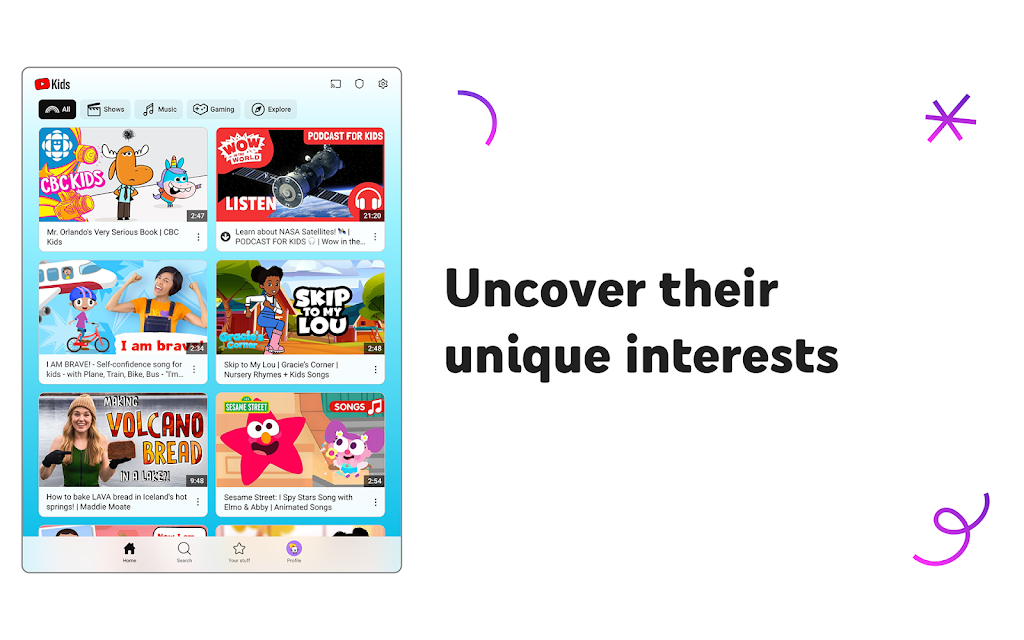Help your kids discover videos they love—and you trust—in an easy, child-friendly app designed to support learning and creativity. With intuitive navigation, strong parental controls, and a variety of viewing modes, your kids can explore new interests, build confidence, and enjoy a safe video streaming experience for kids.