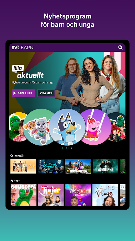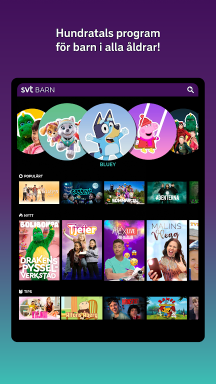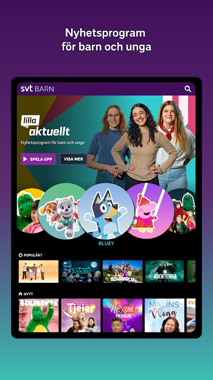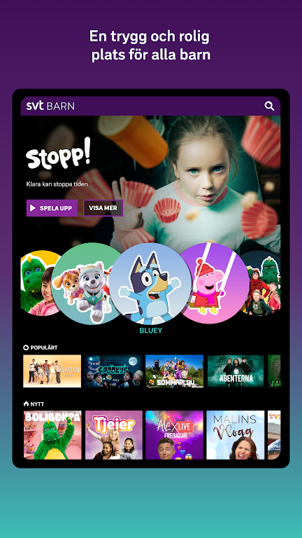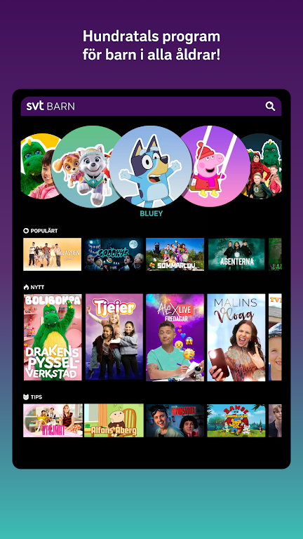 With SVT Children’s streaming service, your child can watch all of SVT’s kids’ programs anytime and anywhere—packed with hundreds of hours of fun, exciting, and educational content for all ages. Designed for a smooth viewing experience, the app loads quickly, works reliably on the go, and supports popular features families look for, like offline-friendly performance and simple parental settings.