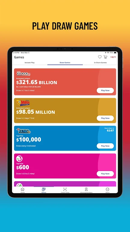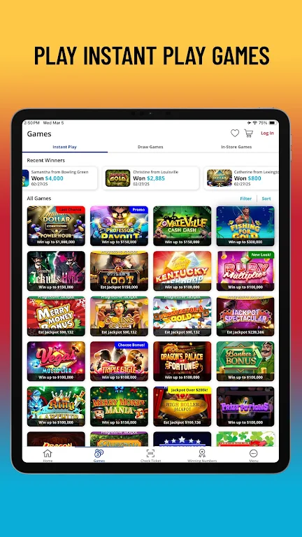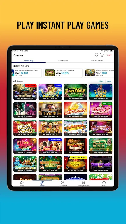 Fuel your imagination with the official Kentucky Lottery app—your fast, secure way to play Instant Play Games or your favorite jackpot games on the go. Easily check lottery numbers, scan retail tickets, manage your wagers, and enjoy seamless access to Second Chance Promotions.