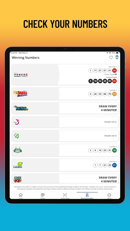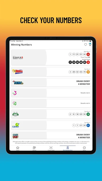 Designed for convenience and responsible play, the app helps you stay updated on jackpot alerts, purchase eligible games, and track your wins in one place. It’s perfect for players seeking a smooth mobile lottery experience, fast ticket scanning, and easy account management—great for users searching for “best lottery app for checking tickets,” “mobile jackpot tracker,” or “online instant win lottery games.”