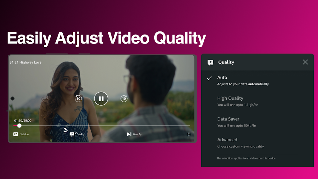 • Adjust video quality, get personalized recommendations, search easily, manage your Watchlist, and share your favorite shows with friends and family