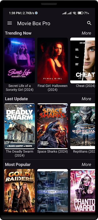 Designed for smooth browsing and quick discovery, Movie Box Pro features a fast movie search engine, trending lists, and an offline-friendly viewing setup powered by the YouTube Android Player API. Enjoy effortless access to your favorites, continue watching from your history, and explore content across every genre.