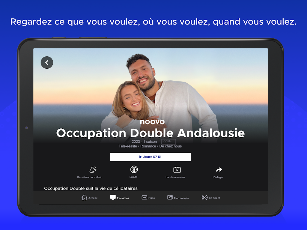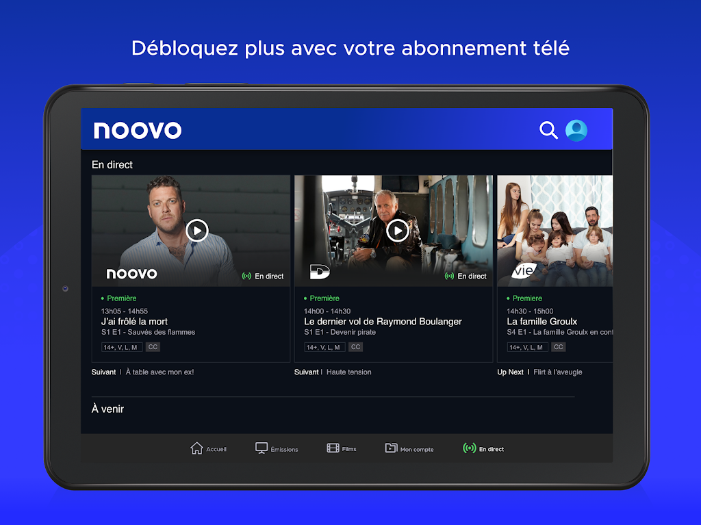 Enter the Noovo universe and explore a full range of emotions through diverse, high-quality television content, including acclaimed Quebec productions. Enjoy a seamless free streaming TV app experience with access to hit shows, exclusive digital series, and engaging content that fits every mood.