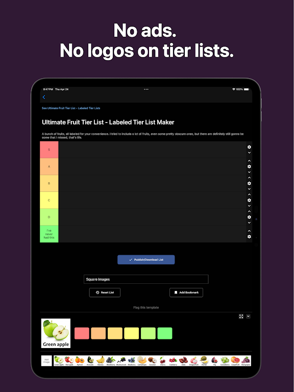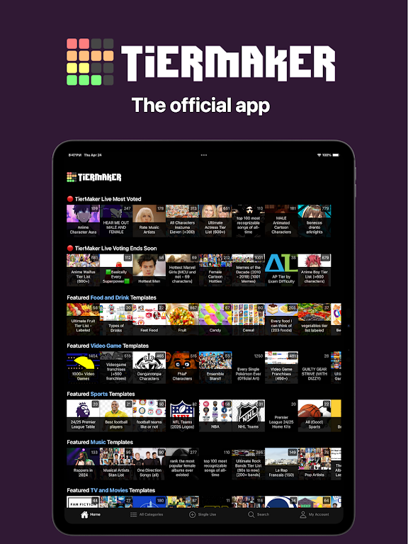 The official TierMaker app is here to upgrade your tier-making experience. Enjoy an ad-free tier list maker app with a clean interface, faster performance, and an improved mobile layout designed to help you create tier lists on mobile quickly and easily.