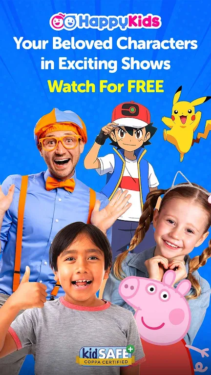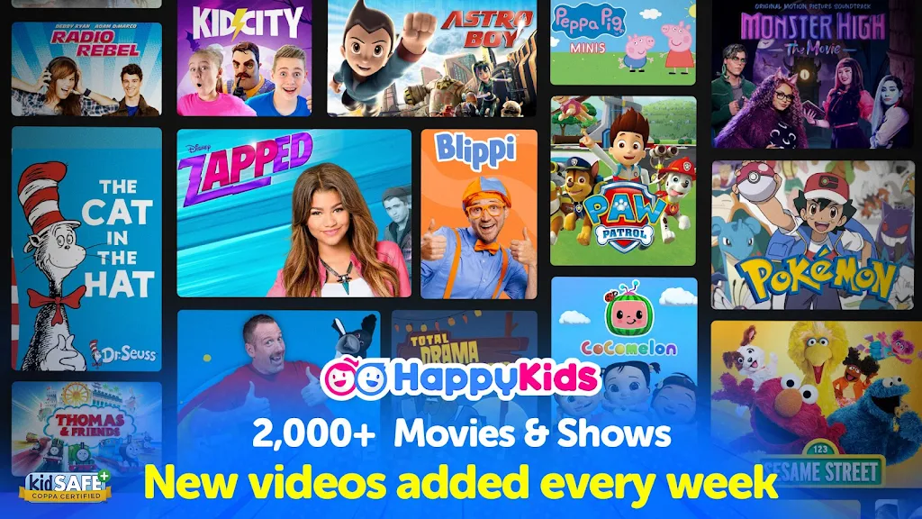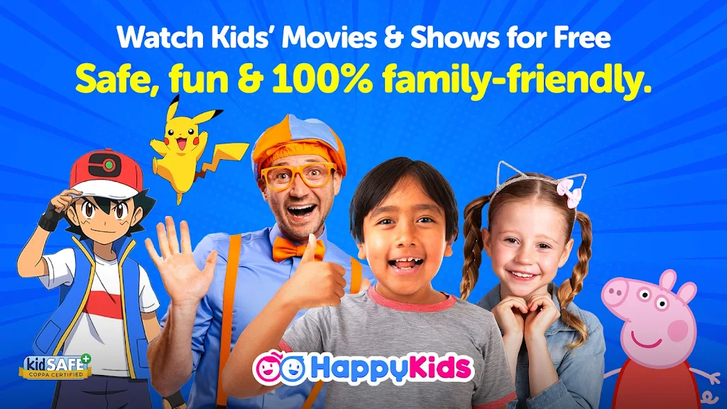 Join over 16 million parents who trust HappyKids for safe and enjoyable streaming for children of all ages. With over 100,000 free videos, including popular family favorites like Cocomelon, Pokémon, Sesame Street, Blippi, Paw Patrol, Peppa Pig, LEGO, K-city Gaming, and many more, your kids will never run out of entertainment! From educational content to fun-filled adventures, HappyKids offers a rich library for kids of all ages and interests.