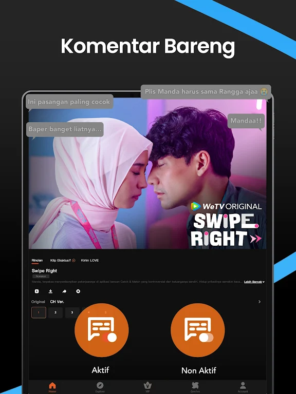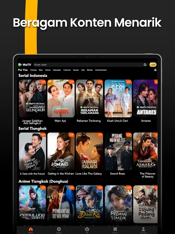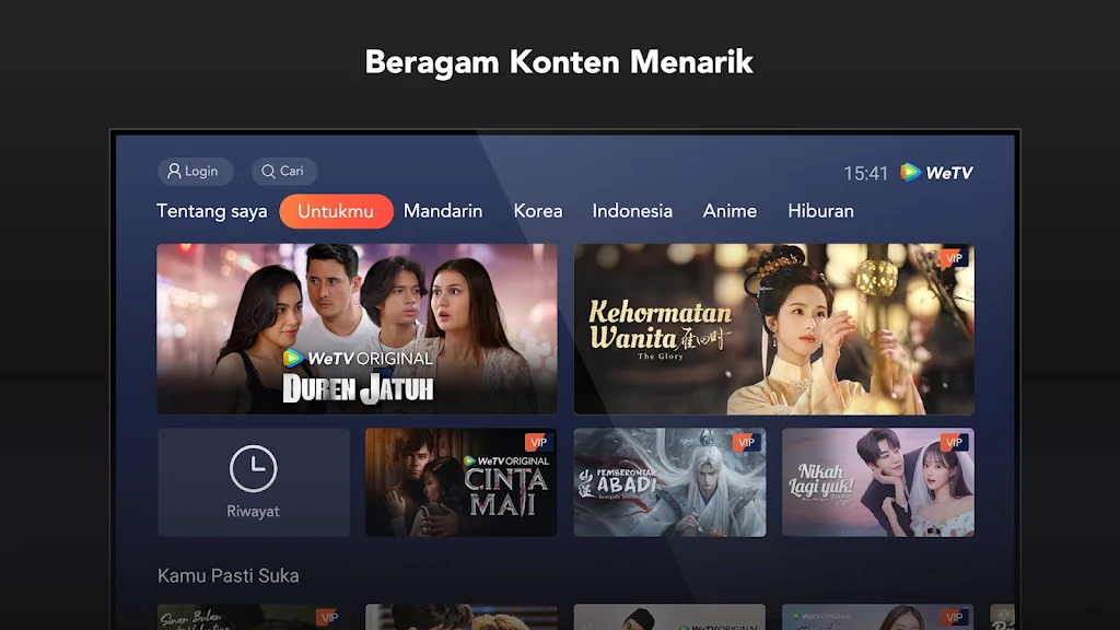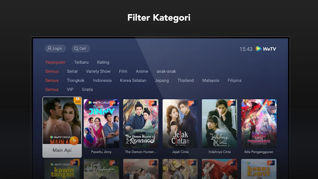WeTV is the ultimate video streaming service offering a wide range of content, from Indonesian original series to the best dramas, films, and anime from China, Korea, Japan, and more, all with official Indonesian subtitles. Enjoy your favorite shows and movies on any device, whenever you want, with a seamless viewing experience.