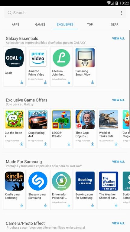 The layout of Galaxy Apps closely resembles Google Play, with a search bar at the top and multiple tabs below for easy navigation. Whether you’re looking for apps, video games, exclusive offers, or wearable apps, the tabs let you filter results in seconds. You can also browse through numerous screenshots, app descriptions, and specifications to ensure the app is right for you before downloading.