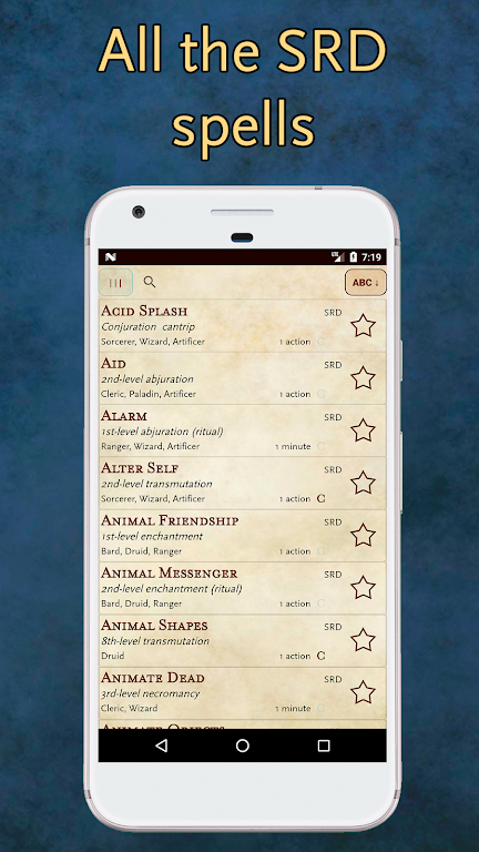 Unlock the full potential of your Dungeons & Dragons 5th Edition adventures with this comprehensive spell reference guide. Whether you’re a seasoned Dungeon Master or a new player, our app gives you access to all spells listed in the System Reference Document (SRD) for D&D 5e. With a smart search bar, finding the perfect spell has never been easier. Plus, you can save your favorites using our simple bookmark feature for quick access during gameplay.