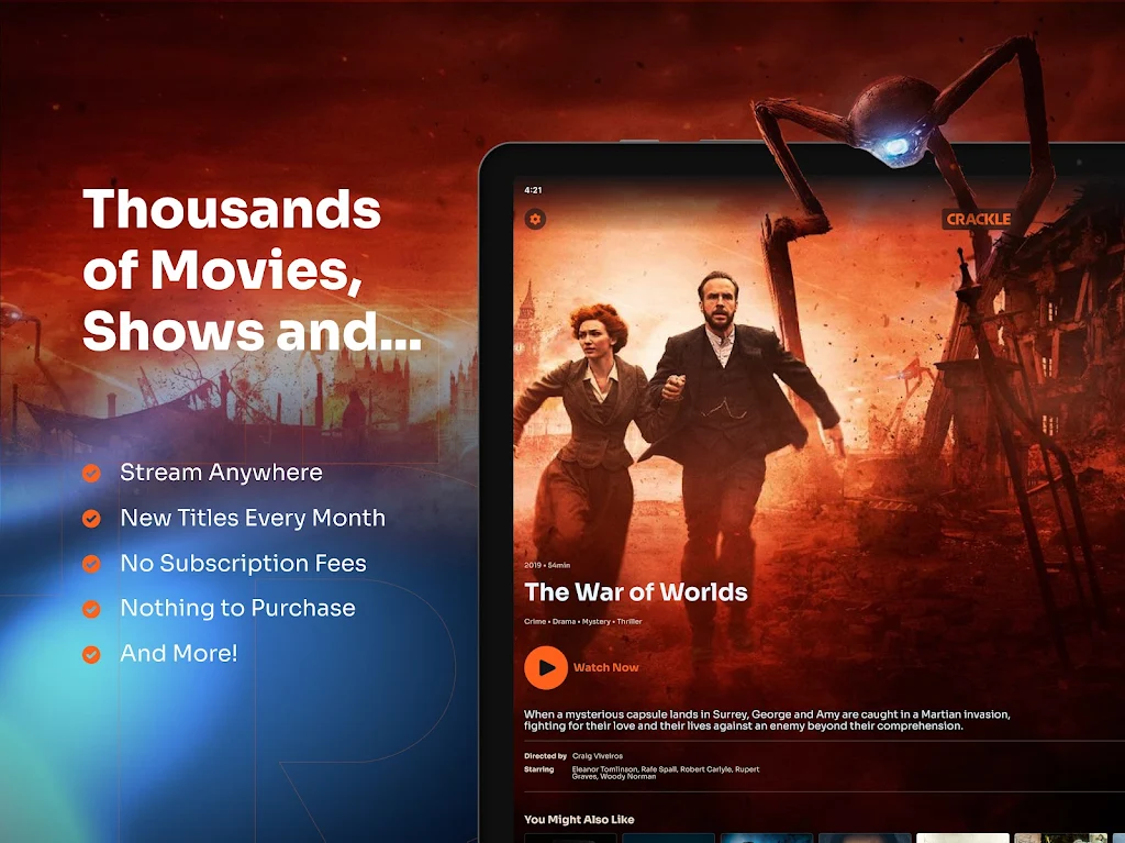 Dive into Action, Comedy, Crime, Drama, Horror, Thrillers, Black Entertainment, Westerns, and Classic TV. Crackle is also the #1 free destination for top-tier British content such as Sherlock, Taboo, Ripper Street, and more. Explore trending streaming content, find family-friendly movies, and enjoy live-tv-style playlists built for nonstop viewing.