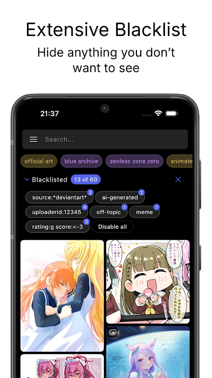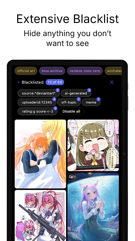 Enjoy a clean, ad-free experience with full tag support, intuitive navigation, and a highly customizable interface. Whether you're managing favorite tags, bulk-saving images, or diving into AI anime art search results, Boorusama helps you organize and discover visuals with ease.