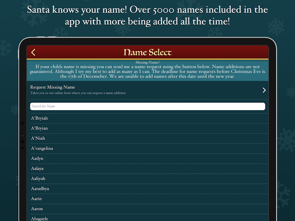 Download the app today to make this holiday season unforgettable with your very own personalized experience with Santa Claus!