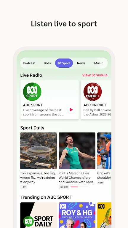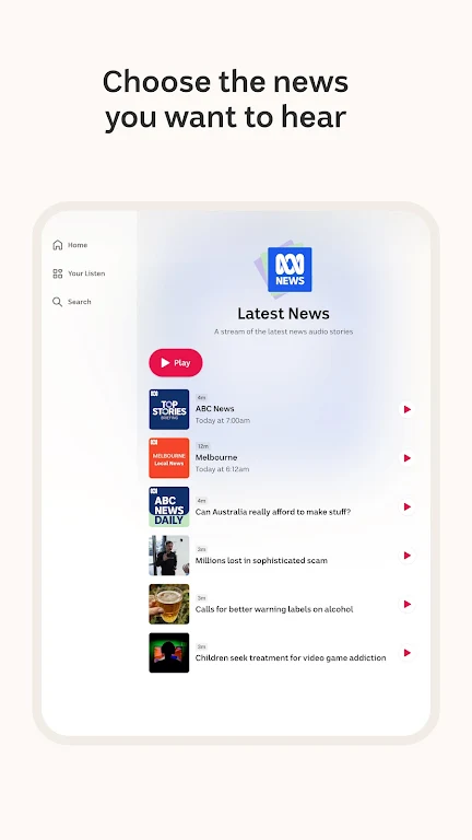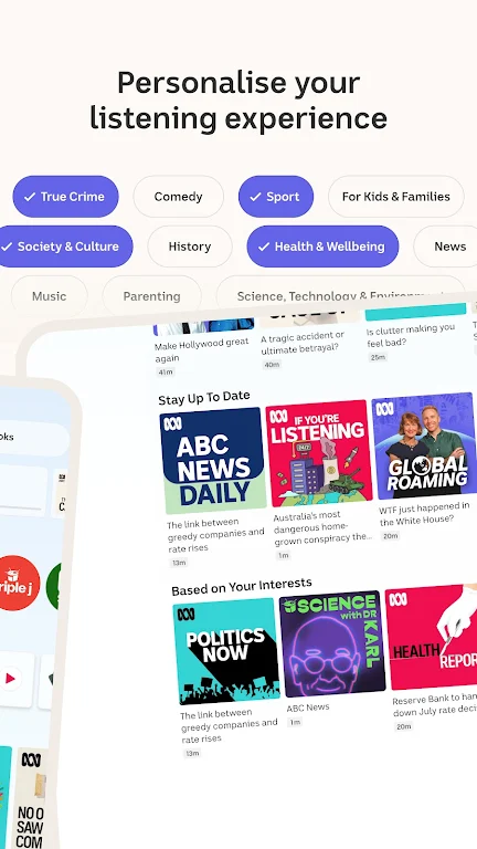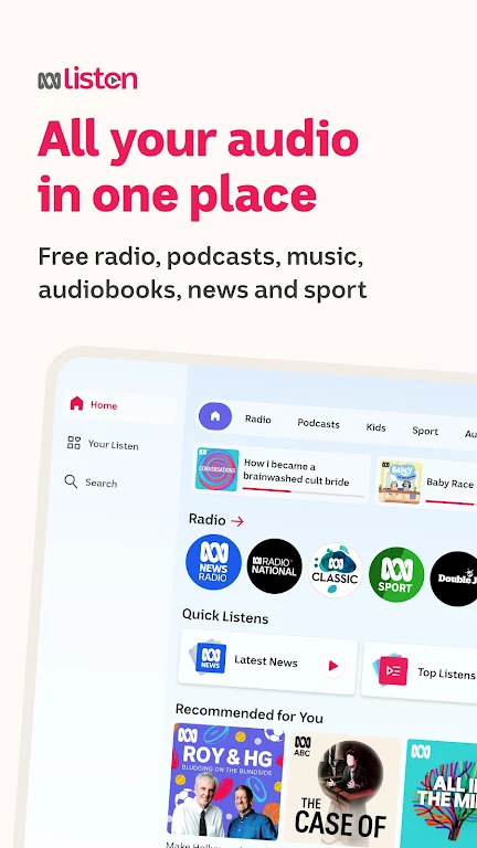 Download the free ABC listen app to enjoy your favourite podcasts, live radio, sport streams and audiobooks on the go. Stay informed, entertained and inspired with curated content designed for every moment of your day. Perfect as a best free radio streaming app and a top podcast player for Android.