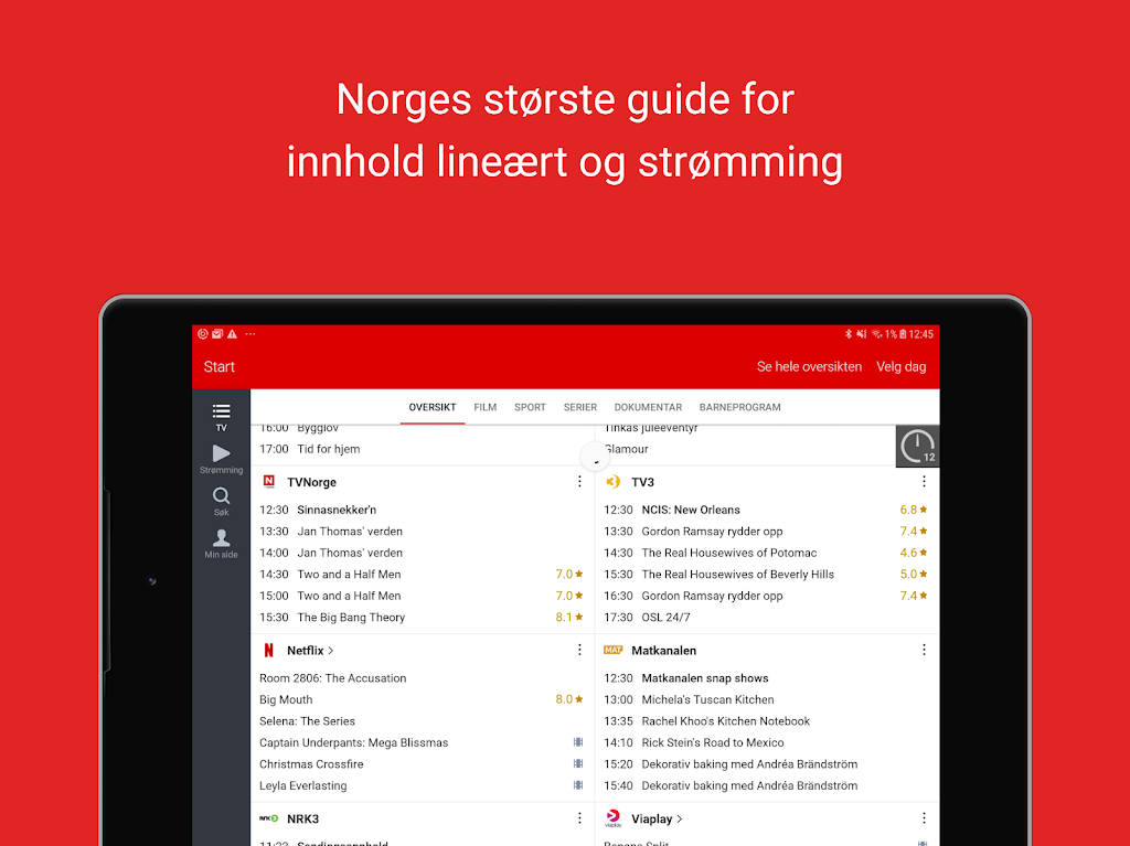 With TVGuide, you can quickly search for content, filter by genre, popularity, or ratings, and even customize your own personal channel lineup. Get recommendations, set reminders, and easily navigate between services like Netflix, HBO Nordic, Disney+, Viaplay, and more, including over 200 TV channels. Whether you're on your phone, tablet, or TV, you’ll never miss a moment of entertainment.