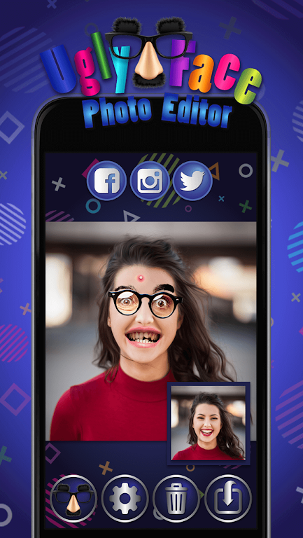 Get ready for a good laugh with Ugly Face Photo Editor, the funniest photo editing app for creating silly, distorted selfies and outrageous face transformations! Choose from a variety of face-changing camera filters, add comical face stickers, and use face-warp effects to create the ultimate ugly face photos. Whether you want to prank your friends or just have fun, this face modifier app has all the tools you need to make your photos hilariously ridiculous!