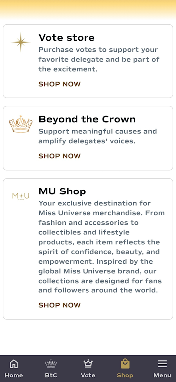 Step into the glamorous world of Miss Universe with the official Miss Universe App! Your vote plays a vital role in selecting the next queen, as you have the power to help decide who will wear the crown. This app is designed with transparency, fairness, and inclusivity at its core, ensuring that every vote counts and every voice is heard. Experience the excitement of the pageant from a whole new perspective—right at your fingertips!