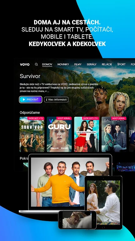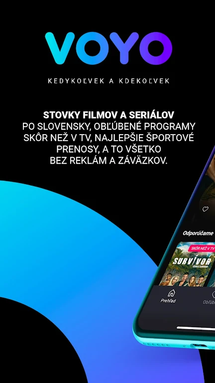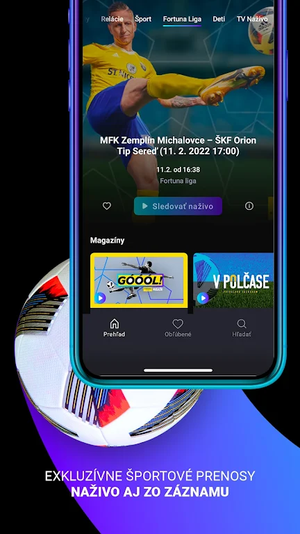 Enjoy hundreds of top movies and series without ads, the best Slovak programs earlier than on TV, and attractive sports live or on replay—all in one powerful streaming app.