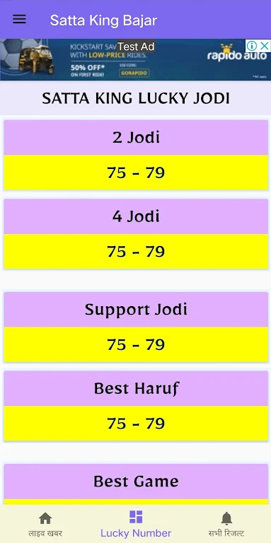 Satta King Result Live (सट्टा किंग रिजल्ट लाइव) is the ultimate app for staying up-to-date with the fastest and most accurate results for popular games like Disawar, Gali, Faridabad, and Ghaziabad. With real-time updates, lucky number predictions, and detailed charts, our app keeps you ahead of the game. Whether you're following Delhi Day or UP results, you'll never miss a winning number again.