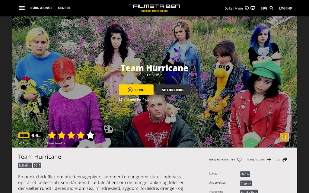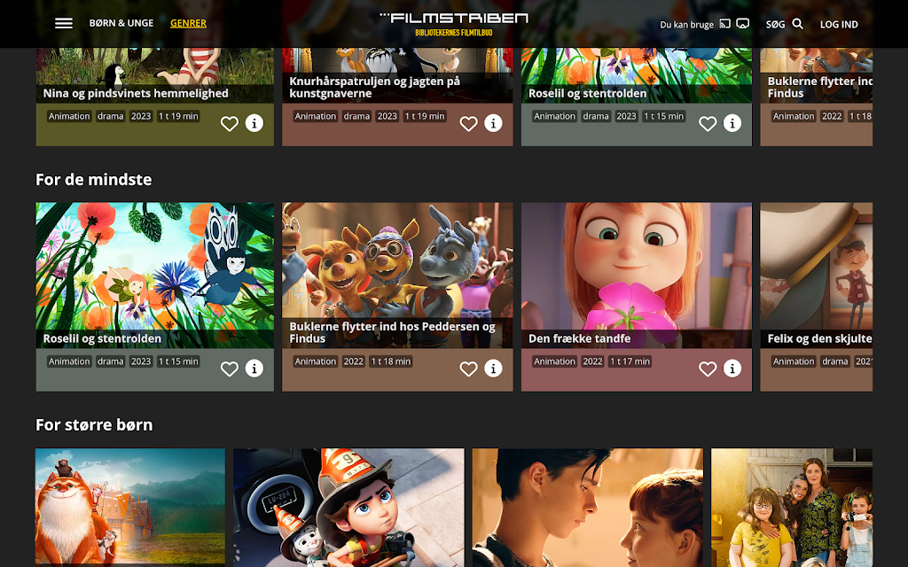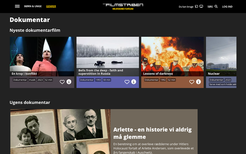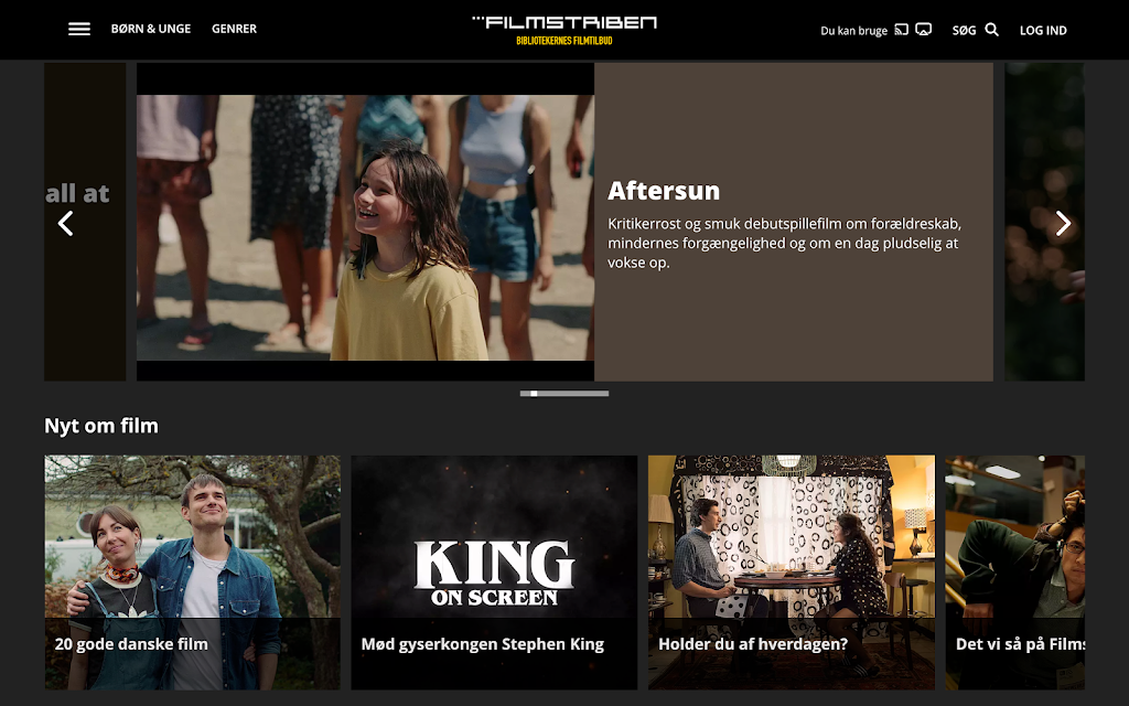 Once you borrow a movie, you'll have 48 hours to watch it on your phone, tablet, or stream it to your TV via Chromecast. Your local library sets the monthly limit on the number of films you can borrow. Filmstriben offers a variety of films, including feature films, documentaries, children’s movies, and animated films for all ages.