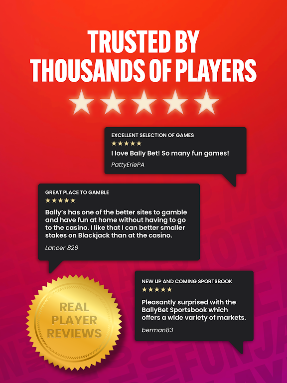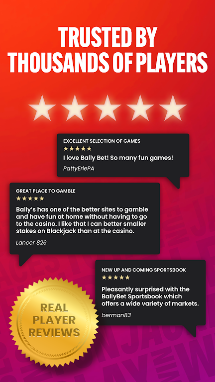 Join millions of players and enjoy an exciting combination of real money casino games and legal sports betting with Bally Bet Sportsbook & Casino app. Trusted and secure, this app offers top-notch gaming experiences in one convenient platform. With over 7,000 ⭐⭐⭐⭐⭐ ratings, it’s quickly becoming America’s favorite place for thrilling online entertainment.