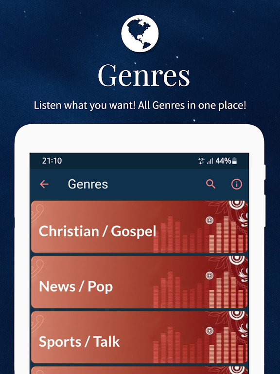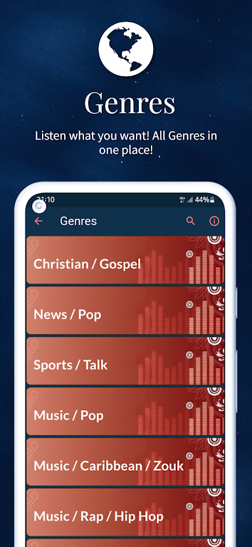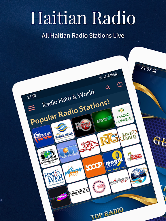 The app is simple and intuitive, with categories, genres, top charts, and countries. Use the advanced radio search to instantly find your favorite station, enjoy background listening with the screen locked, and stream live FM radio anytime, anywhere. This is your go-to app for Haitian music radio, news radio, sports radio, and Christian radio stations.