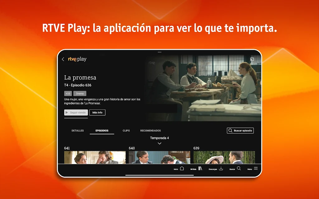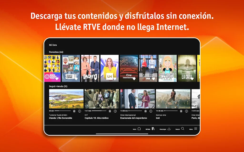 With RTVE Play, enjoy everything RTVE has to offer, including top channels like La 1, La 2, Teledeporte, Playz, and Canal 24 Horas. Whether you're into live football, basketball, current affairs, or exclusive series, RTVE Play has something for everyone. Save your favorites, pick up where you left off, and even download content for offline viewing. Plus, you can stream everything to your TV for a better viewing experience.