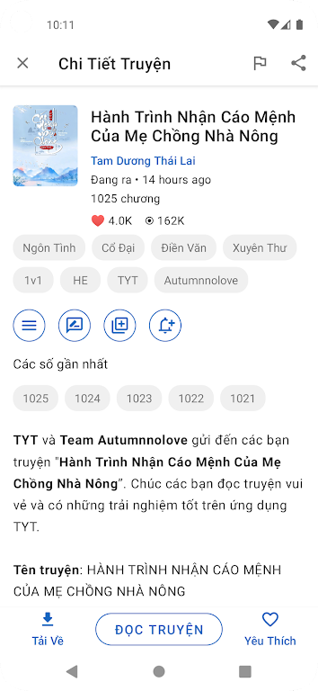 • Listen to audio stories and read offline with fast downloads and automatic reading position saving • Explore exclusive, free, high-quality story collections from TYT community translation teams • Search stories easily by title, author, or genre—no typing marks required • Customize your reading experience: night mode, font size, auto-scroll, full screen, and screen time control • Rate stories, read comments, manage favorites, history, and downloaded chapters with easeApp Size: 8 MBApp Version: 5.9.4