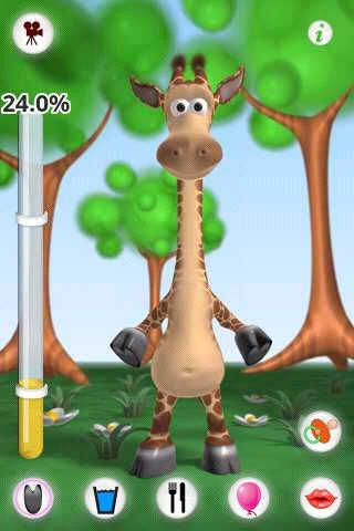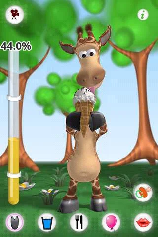 Record and share your fun moments with Gina via YouTube, Facebook, email, or MMS, and watch her do funny things like repeat your words in a helium voice when she's happy! Plus, there are plenty of achievements to unlock as you keep Gina’s happiness high!