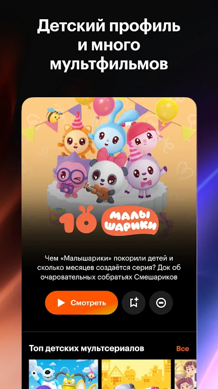 Kinopoisk is also perfect for family time. Use the “watch together” feature to enjoy a movie with friends and family, even if you're miles apart. Our kids’ mode ensures safe and appropriate content for children, making it ideal for family viewing, both at home and while traveling. Download your favorite cartoons and movies for offline access, so the fun never stops, even without an internet connection.