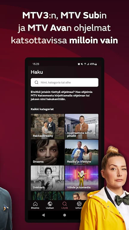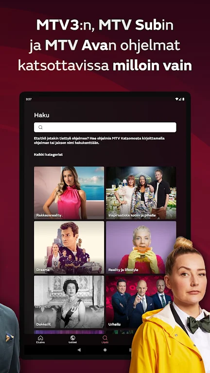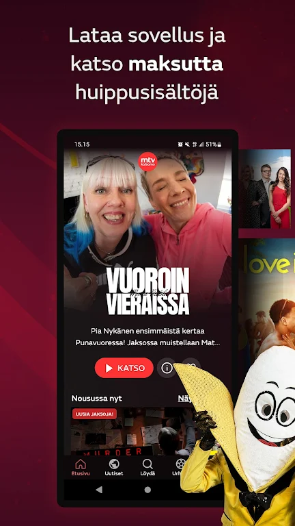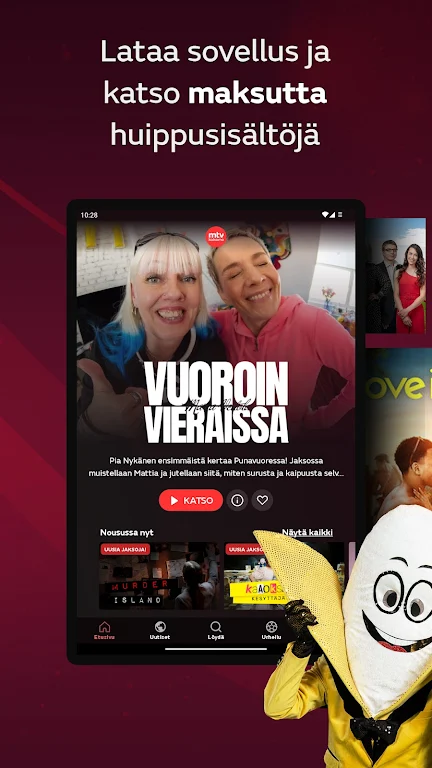 Discover the best of MTV3, Sub, and AVA with the MTV Katsomo app. Enjoy popular reality shows, thrilling dramas, documentaries, and more – all for free. Whether you’re into binge-watching your favorite series or exploring new shows, MTV Katsomo brings entertainment right to your fingertips.