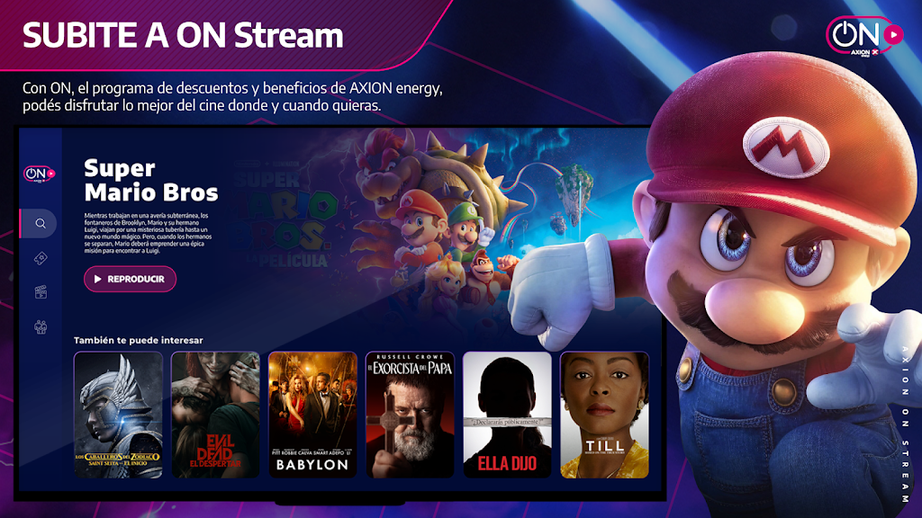 ON Stream is the perfect complement to our ON rewards program. Now you can redeem your ON coins for amazing movies, with no monthly subscriptions required. All Argentines have super easy access to watch new movie releases at home, on the go, or on Android TV.