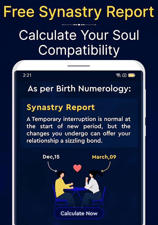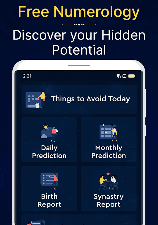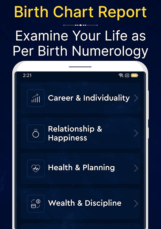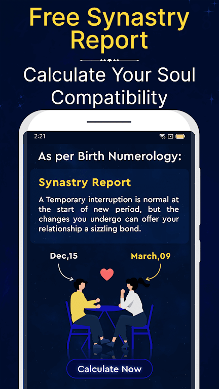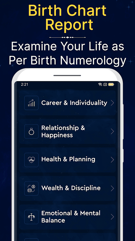 - Free Birth Chart Report: Instant numerology report with insights into career, relationships, health, wealth, emotional balance, family, learning ability, wisdom, recognition, luck, success, and determination. - Match Making & Compatibility: Calculate relationship compatibility using personal details and numerology principles to understand present and future harmony. - Daily Guidance: Get Daily Prediction, Daily Tips, Things to Avoid, Daily Lucky Number, and Daily Lucky Color to plan each day wisely. - Monthly Insights: Personal Monthly Number, Monthly Prediction, and Monthly Resolution tracking to stay aligned with your goals. - Yearly Forecasts: Personal Year Number, Yearly Prediction for career, love, health, and effective Yearly Resolutions.App Size: 15 MBApp Version: 1.1.3.2