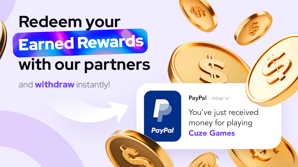 Every minute you spend on CUZE helps you earn cash, loyalty points, and exclusive bonuses. Choose from hundreds of trending games, complete daily surveys for money, and cash out your earnings via PayPal or gift cards. Looking for easy side hustles or legit work-from-home apps? CUZE gives you multiple ways to make money fast and securely.