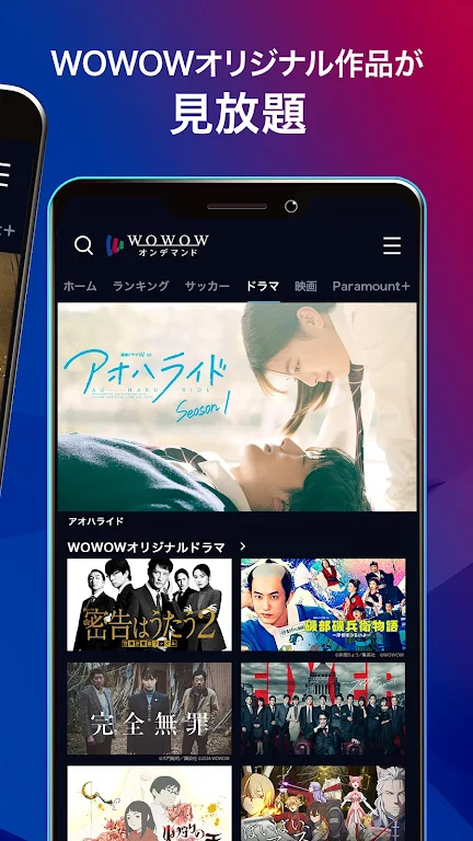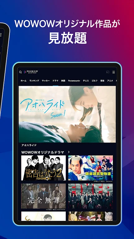 A wide variety of genres and gems of entertainment are gathered in one powerful streaming app. WOWOW On Demand delivers encounters and excitement only WOWOW can offer, including world-class sports broadcasts, hit movies, spectacular dramas, live music, stage shows, anime, and documentaries.