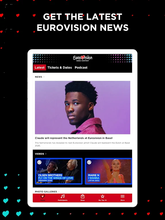Read the latest Eurovision news, explore exclusive updates, and watch iconic Eurovision performances all in one place. This Eurovision Song Contest app is designed to bring fans closer to the music, the artists, and the magic.