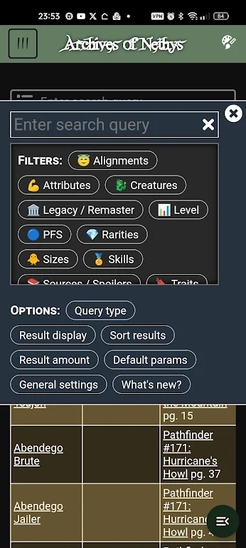 Enjoy faster access to the rules, tables, and encounters you need with a more efficient UI and custom folders for bookmarking important content. With features designed for Pathfinder 2e enthusiasts, including a dynamic floating filter and the ability to reorder bookmarks, this app keeps your game running smoothly. Perfect for players and GMs alike, the app also integrates with https://2e.aonprd.com/ for direct access to Pathfinder 2e content. Keep your game in full flow with minimal effort!