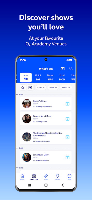 With the O2 Academy app, finding your next live event has never been easier. Stay updated on the latest gigs, view detailed artist profiles, and get instant notifications about new shows and exclusive presale opportunities. Make sure you never miss out on seeing your favorite bands live again!