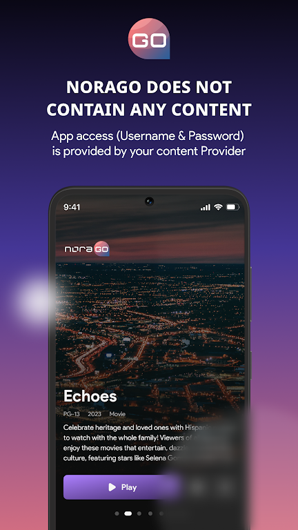 The NoraGO app is a versatile media player designed to give users easy access to content provided by your service provider. Built by Setplex, the app allows providers to offer streaming of live channels, movies, radios, and other media content directly to end users. Please note that NoraGO does not include any content itself; it simply serves as a platform for providers to deliver their media to you.